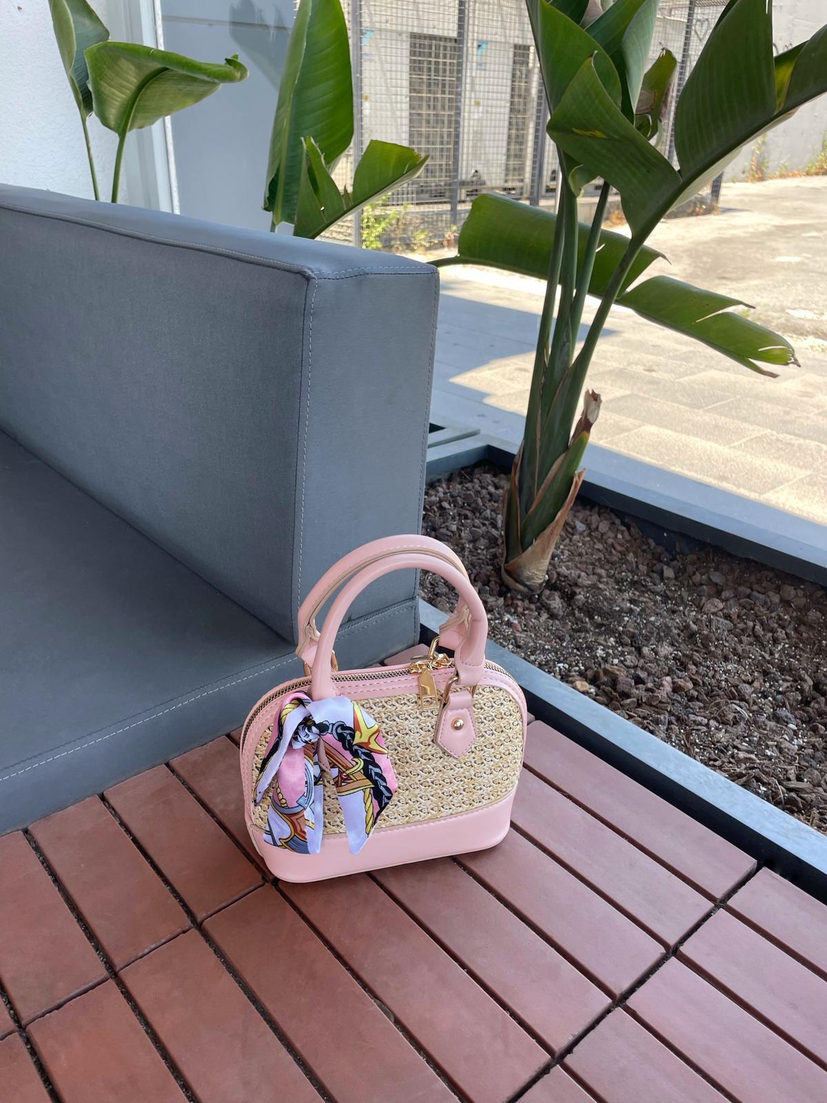 Bella Hasır ve Fular Detaylı Çapraz Çanta Pudra