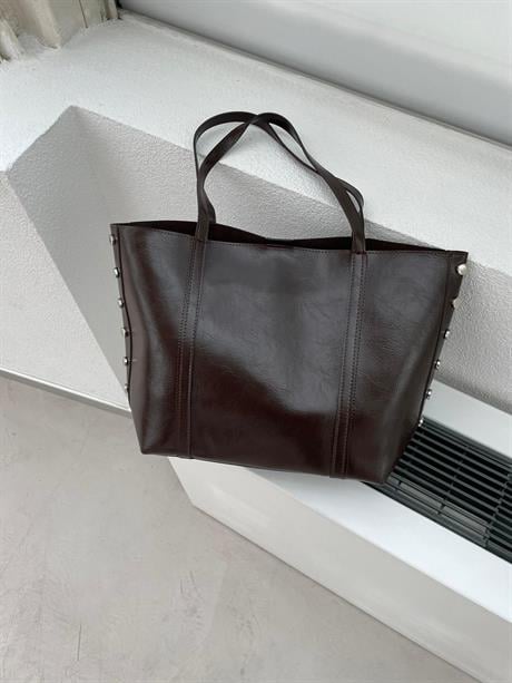 Clary Zımba Detaylı Büyük Omuz Çantası Acı Kahve