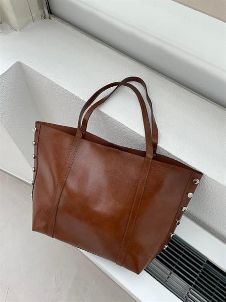 Clary Zımba Detaylı Büyük Omuz Çantası Taba