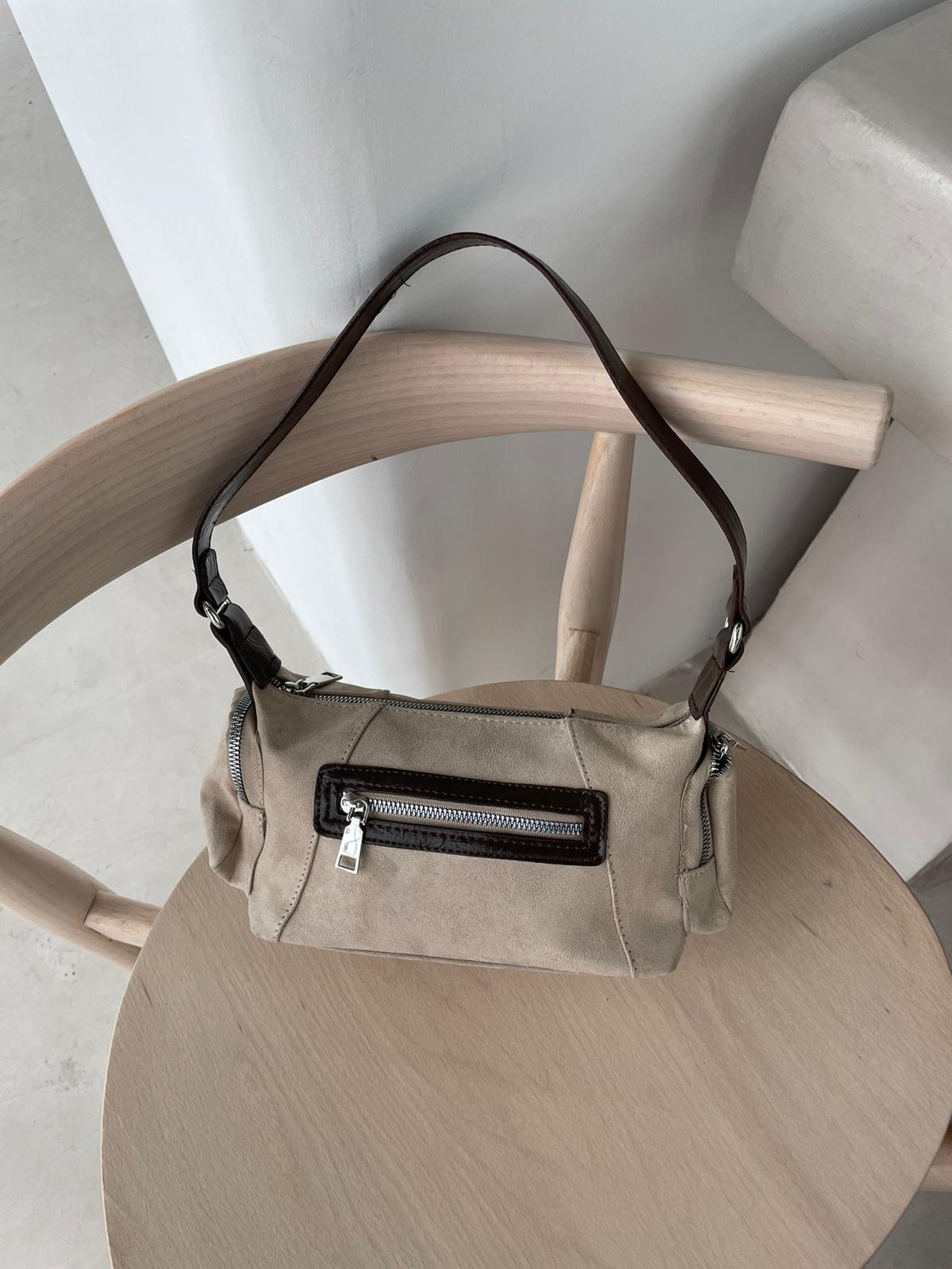Marla Süet Omuz Çantası Krem-Kahverengi